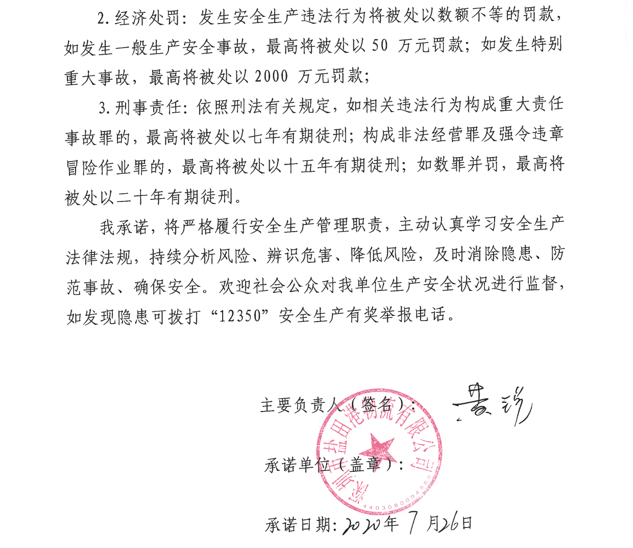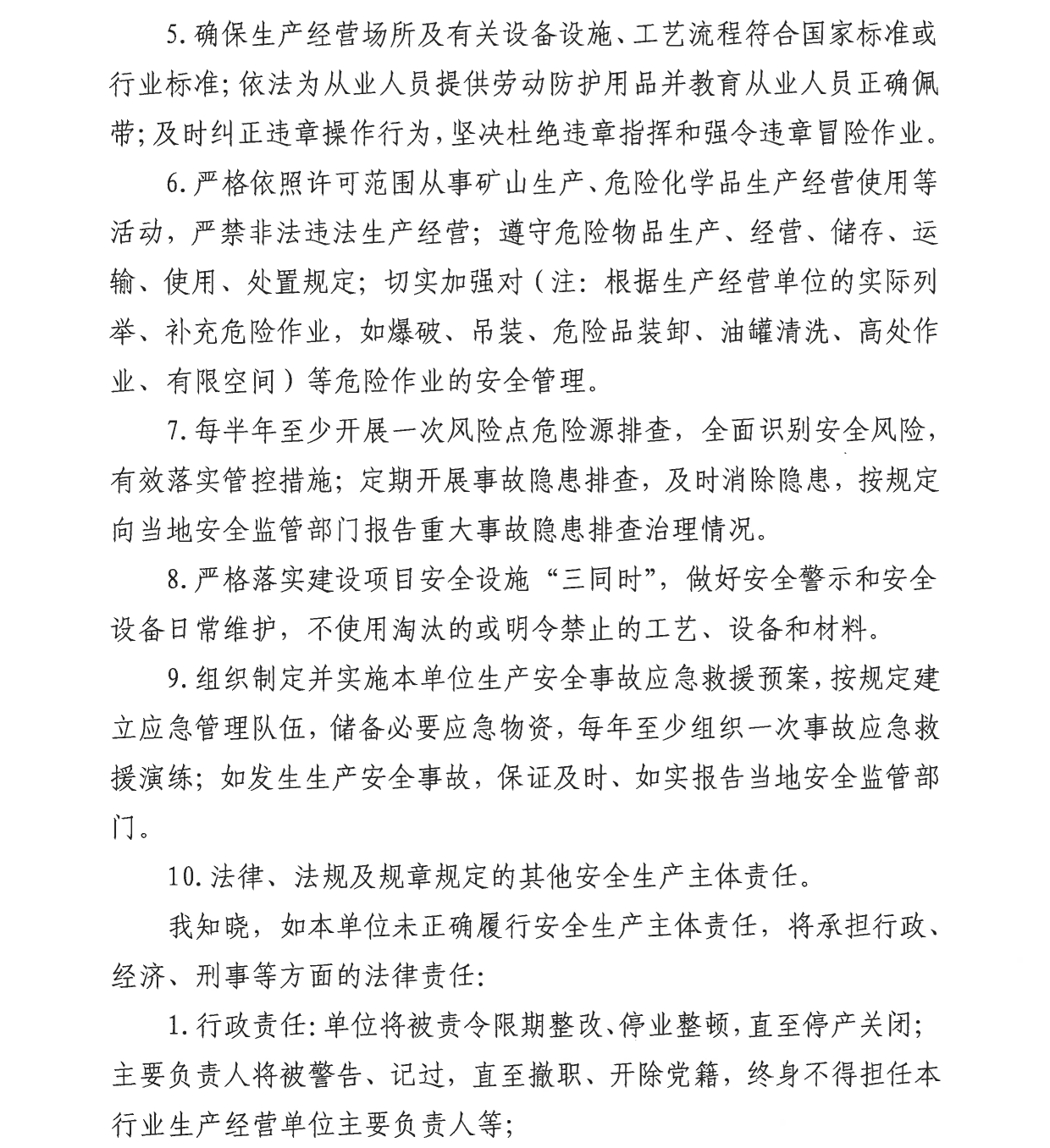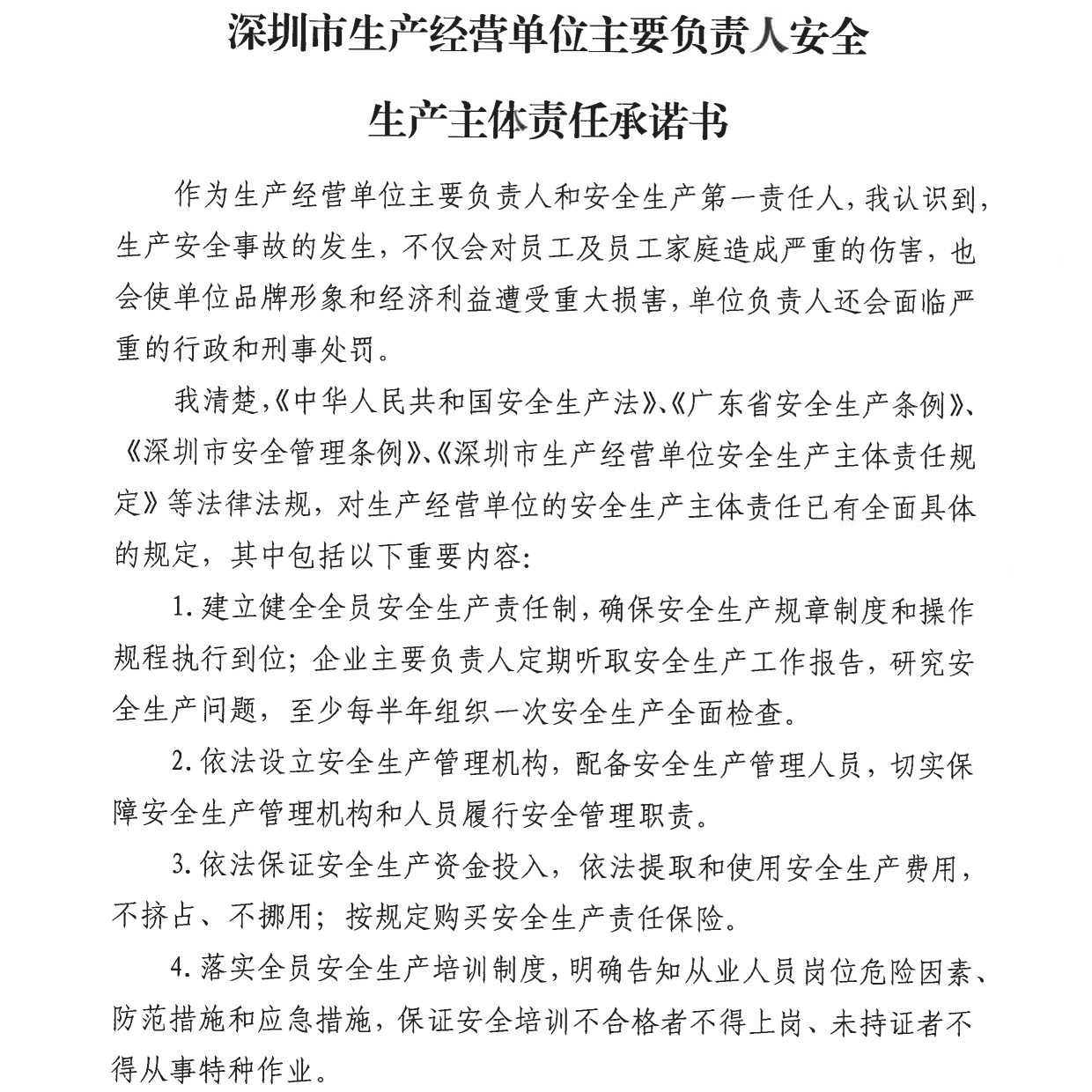 深圳市生产经营单位主要负责人安全生产主体责任承诺书